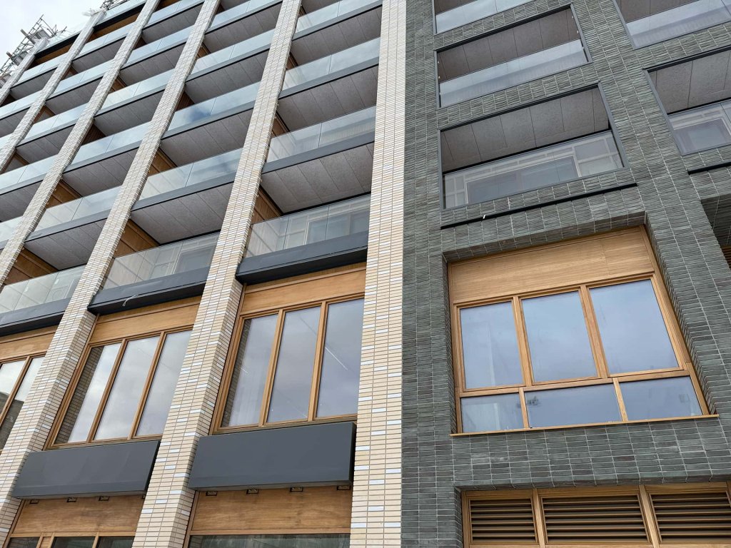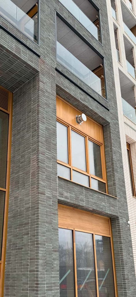 Nybyggnad av bostäder på Södermalm i Stockholm. En tegelfasad av 4 olika förband och färger med Wallfast som nöjd kund.