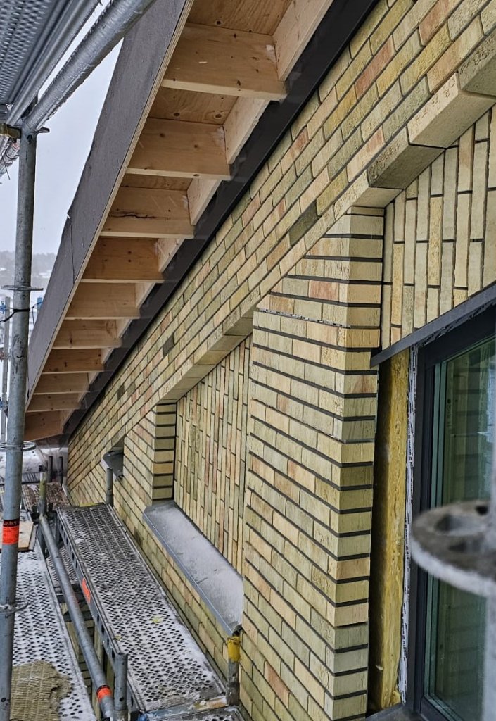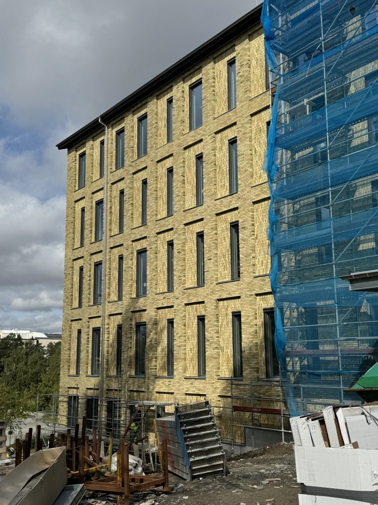 Nybyggnad av bostäder med Stofix tegelfasadsystem.